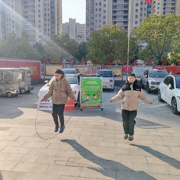 思想引领环节结束后,活动场地转移至社区院内。社工首先带领青少年们开展系统热身,充分活动关节、激活体能,为后续运动做好准备。随后的跳绳技巧讲解中,社工针对握绳姿势、跳跃节奏、呼吸调节等关键要点进行示范指导,并组织开展小组同步跳绳练习。孩子们在团队配合中相互鼓励、共同进步,跳绳声与欢呼声交织成欢乐的乐章,不仅锻炼了身体素质,更培养了规则意识与协作默契。